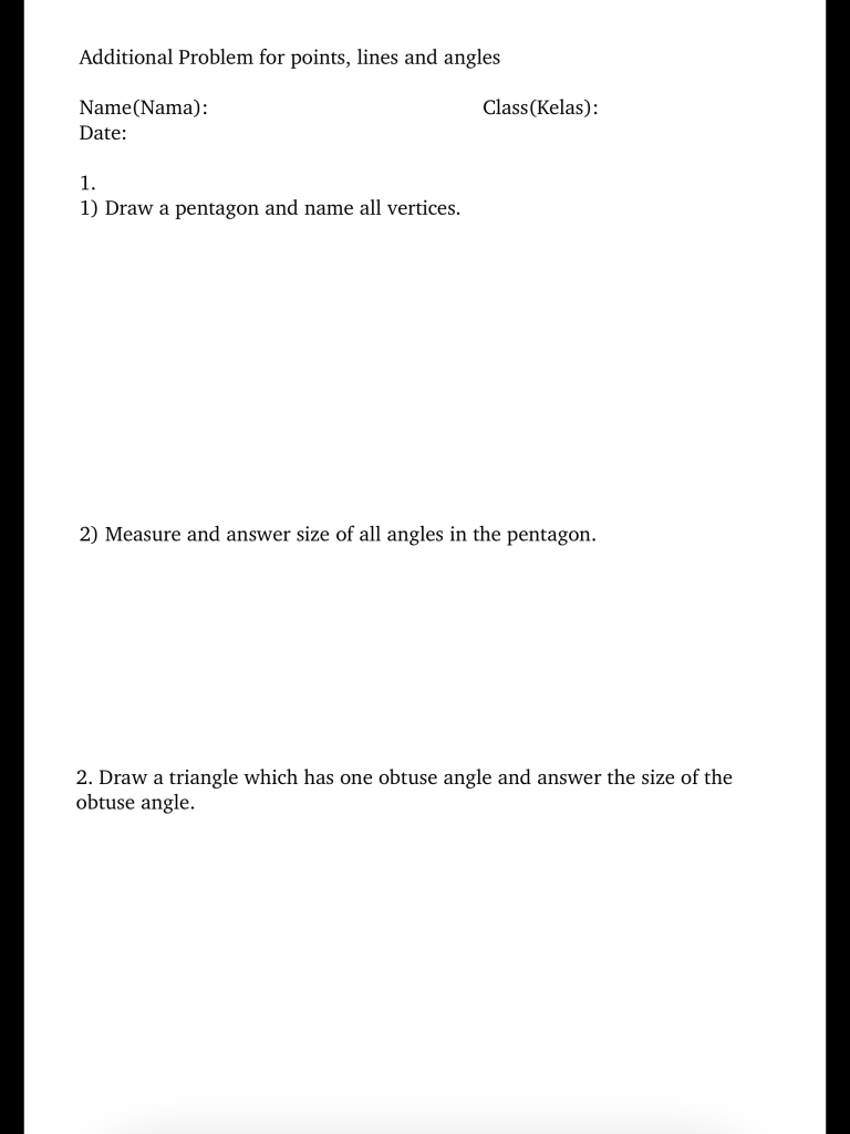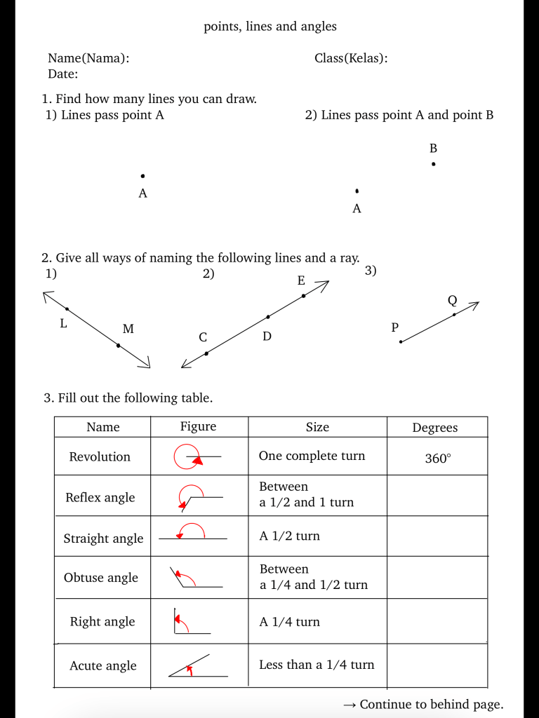 In 2nd class, I didn’t forget to check students’ attendance. I collected homework I had given them in 1st class, then I introduced today’s topic “Points, Lines and Angles”. I used the Indonesian national flag to introduce the topic. I make one student to draw the flag on whiteboard. I meant to make students participants, not audiences of class and also make them feel familiar to this topic. Continuously, I explain what points, lines and angles are, the kind of angles and how to measure size of angles with protractor.